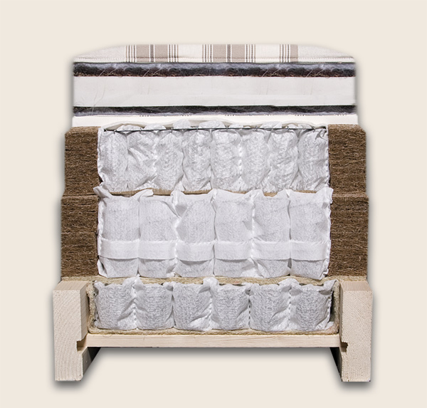spring layers wrapped in natural fills. The bed is