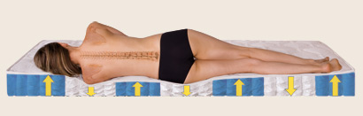 Solution: multi-point individual independent supports, divided in zones with different resilience, which increases in the zones where the pressure of the body is the greatest.